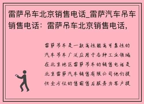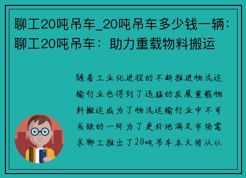 莱芜吊车出租:专业服务,安全高效,满足您的各种吊装需求 专业吊车设备 莱芜吊车出租公司拥有一支专业的吊车团队,配备各种规格和型号的吊车设备,包括塔吊、汽车吊、履带吊等。这些吊车设备均经过严格的质量检测...